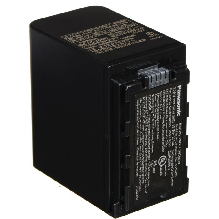 The Panasonic AG-VBR89G is a 7.28V battery. It features a 65Wh, 8,850mAh capacity and can be charged using the Panasonic AG-BRD50 charger, sold separately. A full charge takes approximately 4 hours.