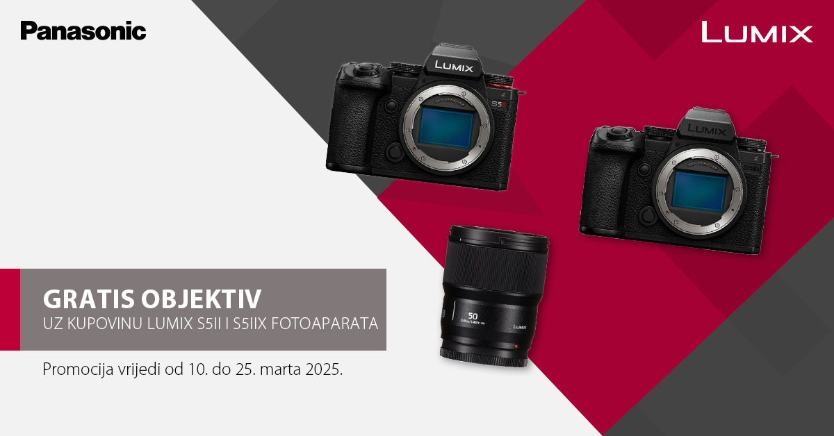 Uz kupovinu određenih Panasonic Lumix S5 II fotoaparata gratis dobivate Lumix S 50mm f1.8 objektiv.